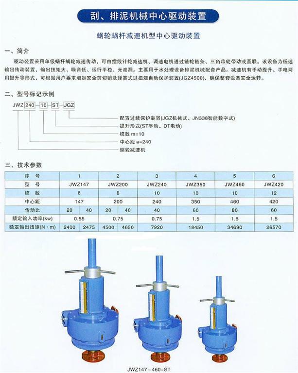 刮泥機,是一種排泥設備。組成部分:刮泥機由桁車、刮泥耙、撇渣板、驅(qū)動裝置和自控柜等到組成。刮泥機主要有中心傳動刮泥機、周邊傳動刮泥機。中心傳動刮泥機主要由工作橋、傳動裝置、穩(wěn)流筒、傳動軸、刮臂、刮泥板等組成。該機設有橫跨池子的固定平臺,工作時其整機載荷都作用在工作橋中心;污水經(jīng)池中心穩(wěn)流筒均流到四周。隨著過流面積增大而流速降低,污水中的沉淀物沉淀于池底,刮泥機將沉淀的污泥刮集到中心集泥坑中,利用水壓將其從污泥管中排出。刮泥機減速機采用蝸輪蝸桿傳動,傳動平穩(wěn)、傳動扭矩大,結(jié)構(gòu)在刮泥機上應用合理。