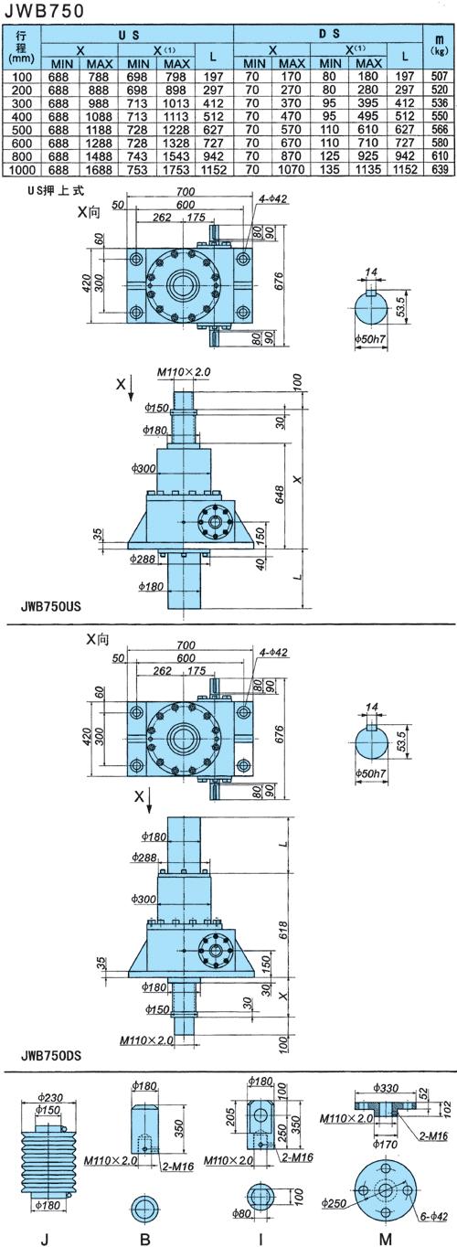 注:①本身無自鎖功能,需外加制動(dòng)裝置或選擇帶有制動(dòng)的驅(qū)動(dòng)源。